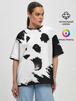 Женская футболка оверсайз / Панда | ЧБ