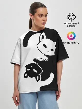 Женская футболка оверсайз / ДВА КОТА КУВЫРКАЮТСЯ.