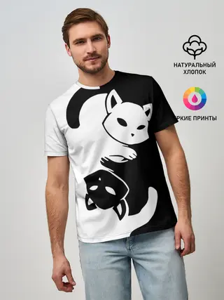 Мужская базовая футболка / ДВА КОТА КУВЫРКАЮТСЯ.