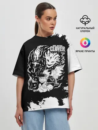 Женская футболка оверсайз / Чёрный клевер Аста и демон Либе