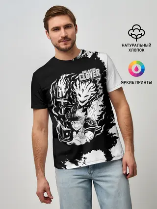 Мужская базовая футболка / Чёрный клевер Аста и демон Либе