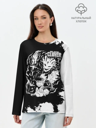 Лонгслив женский. Хлопок / Чёрный клевер Аста и демон Либе