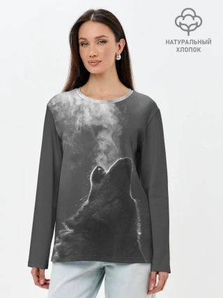 Лонгслив женский. Хлопок / Воющий волк