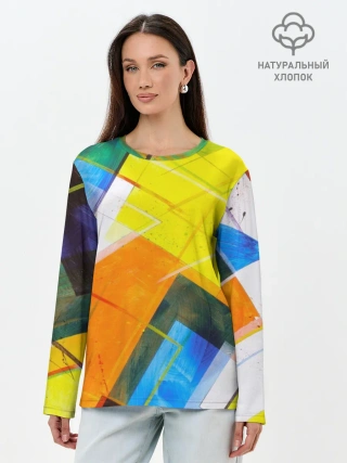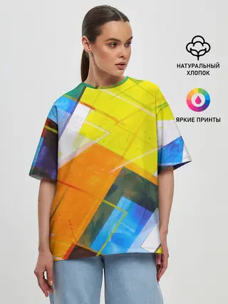 Женская базовая футболка / Абстрактный бежево-синий узор