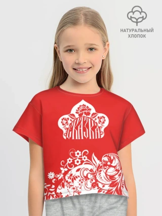 Футболка для девочки укороченная базовая хлопок / RusSkazka