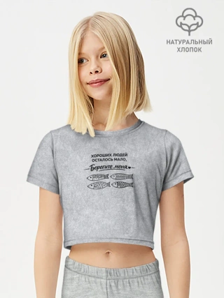 Футболка для девочки укороченная базовая хлопок / Берегите меня