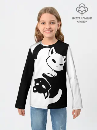 Детский лонгслив / Черный и белый кот кувыркаются.