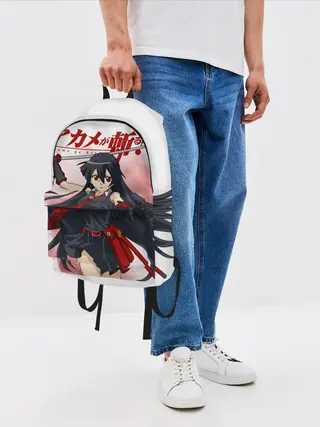 Рюкзак джинсовый / Акаме атакует на белом фоне