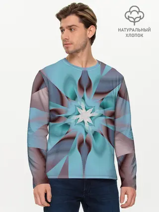 Мужской лонгслив базовый / Абстрактный цветок. Голубой.