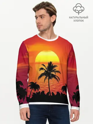 Мужской лонгслив базовый / Пальмы на фоне моря