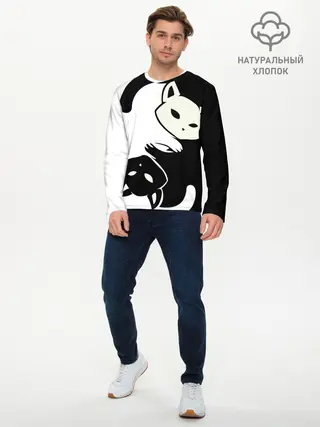 Мужской лонгслив базовый / Инь и Янь котики
