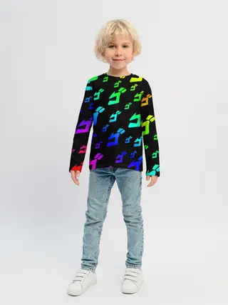 Детский лонгслив / Радужный Паттерн Лого ДжоДжо