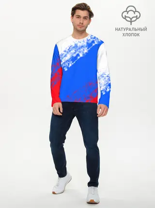 Мужской лонгслив базовый / Флаг РФ триколор