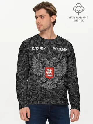 Мужской лонгслив базовый / Служу России, камуфляж в точку