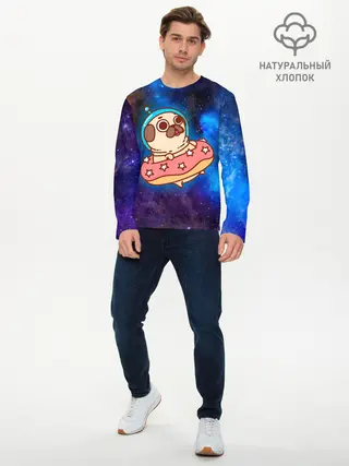 Мужской лонгслив базовый / Мопс Космонавт
