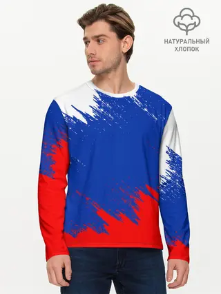 Мужской лонгслив базовый / РОССИЯ ТРИКОЛОР