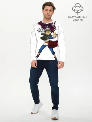 Мужской лонгслив базовый / Чёрный клевер Аста красный меч