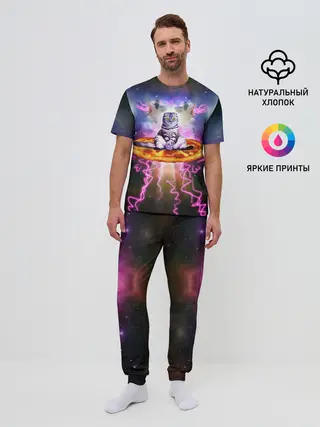Мужская пижама с брюками / Кот на пицце