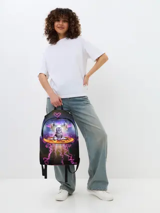 Рюкзак джинсовый / Кот на пицце