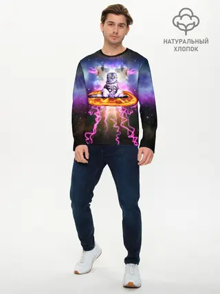 Мужской лонгслив базовый / Кот на пицце