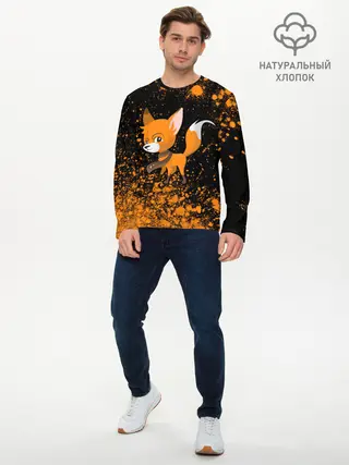 Мужской лонгслив базовый / Лиса - В Шарфике - Взрыв