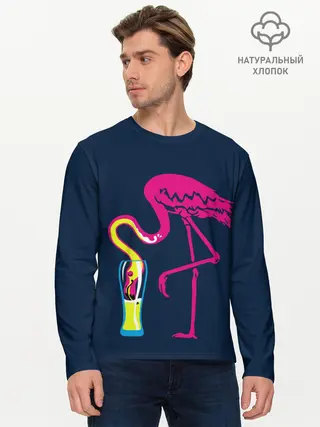 Мужской лонгслив базовый / Кислотный фламинго