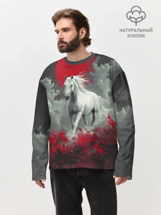 Мужской лонгслив оверсайз хлопок / Лошадь и угли