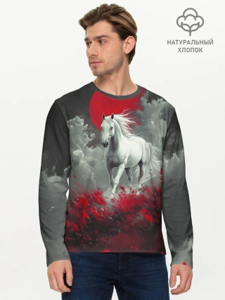 Мужской лонгслив хлопок / Лошадь и угли