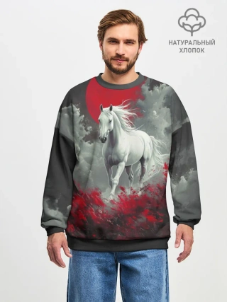 Мужской свитшот оверсайз хлопок / Лошадь и угли