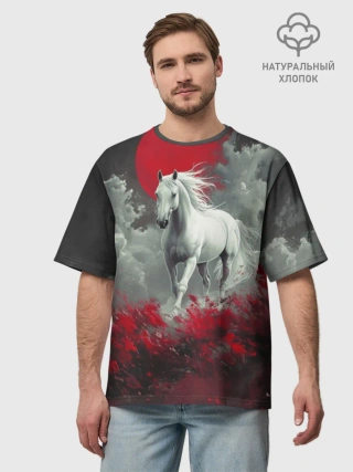 Мужская футболка оверсайз хлопок / Лошадь и угли