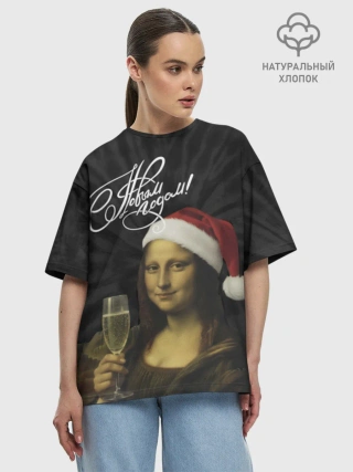 Футболка женская оверсайз премиум / Джоконда новогодняя
