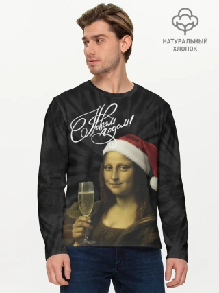 Мужской лонгслив хлопок / Джоконда новогодняя