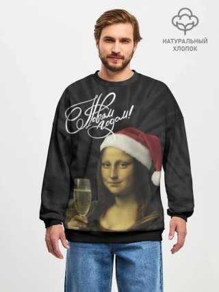 Мужской свитшот оверсайз хлопок / Джоконда новогодняя