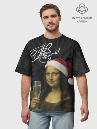 Футболка Мужская оверсайз премиум / Джоконда новогодняя