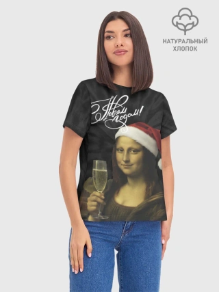 Женская базовая футболка хлопок / Джоконда новогодняя
