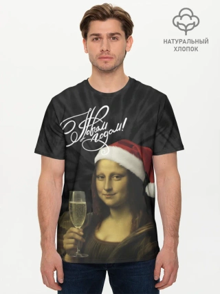 Мужская базовая футболка хлопок / Джоконда новогодняя