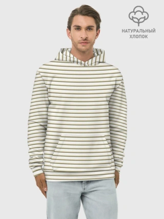 Худи мужской база хлопок / Зелёная приглушённая полоска