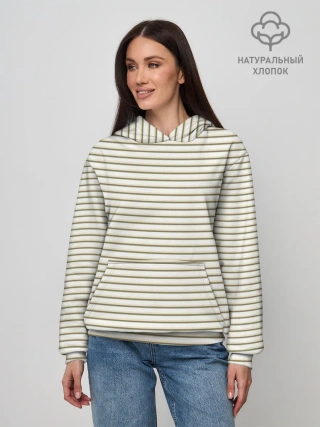 Худи женский база хлопок / Зелёная приглушённая полоска