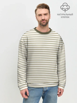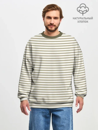 Мужской свитшот оверсайз хлопок / Зелёная приглушённая полоска