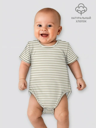 Боди для малышей / Зелёная приглушённая полоска