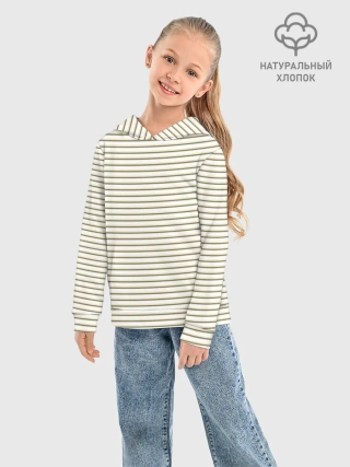 Детское худи хлопок / Зелёная приглушённая полоска