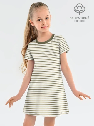 Детское платье хлопок / Зелёная приглушённая полоска
