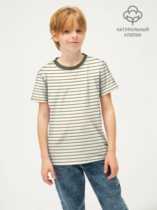 Детская футболка хлопок / Зелёная приглушённая полоска