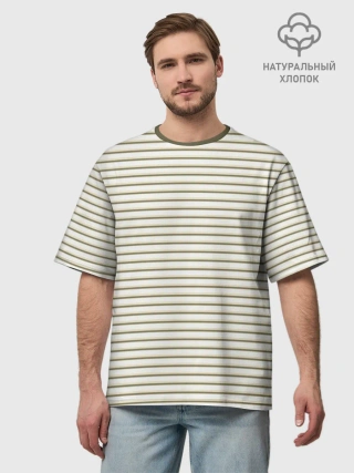 Мужская футболка оверсайз хлопок / Зелёная приглушённая полоска