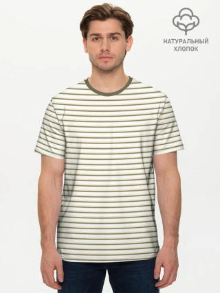 Мужская базовая футболка хлопок / Зелёная приглушённая полоска
