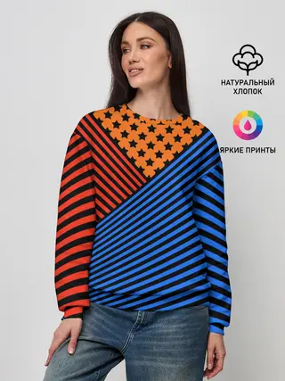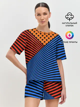 Женская футболка оверсайз / Комбинированный полосатый узор