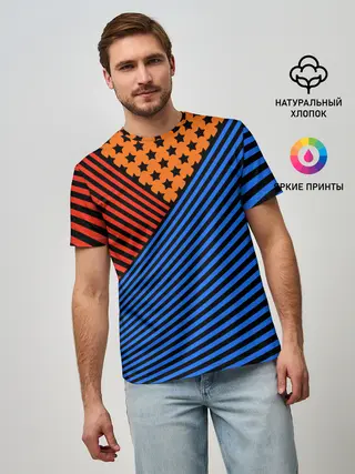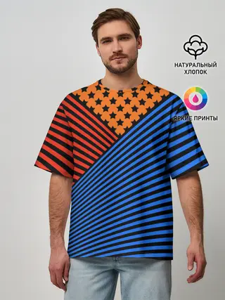 Мужская футболка оверсайз / Комбинированный полосатый узор