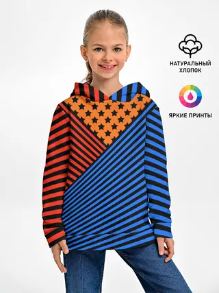 Худи мужской база хлопок / Комбинированный полосатый узор
