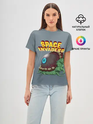 Женская футболка оверсайз / Boss | Space Invaders | Old game