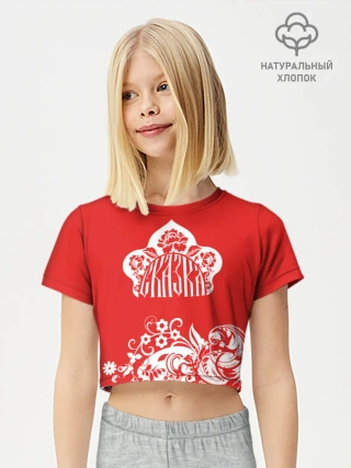 Футболка для девочки укороченная базовая хлопок / RusSkazka